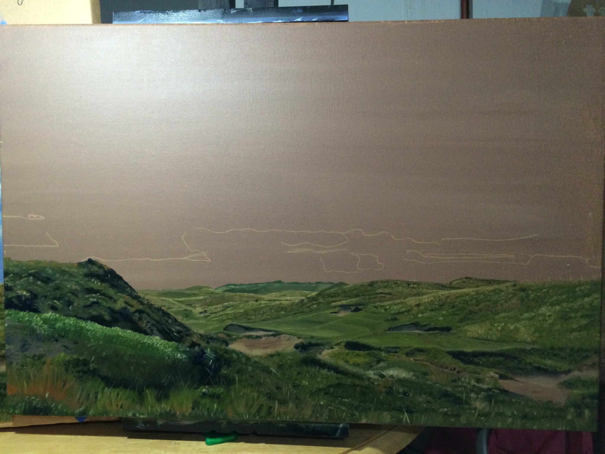 Dismal River White Hole 15 Part 7 September 26, 2014September 26, 2014 • jrbgolfs Finished up the ground this evening. Always amazed at how much white is required for the rolling hills in the background. The sky and clouds should be fun as they are very dramatic and bold. Share this: Click to share on Facebook (Opens in new window) Facebook Like Loading...