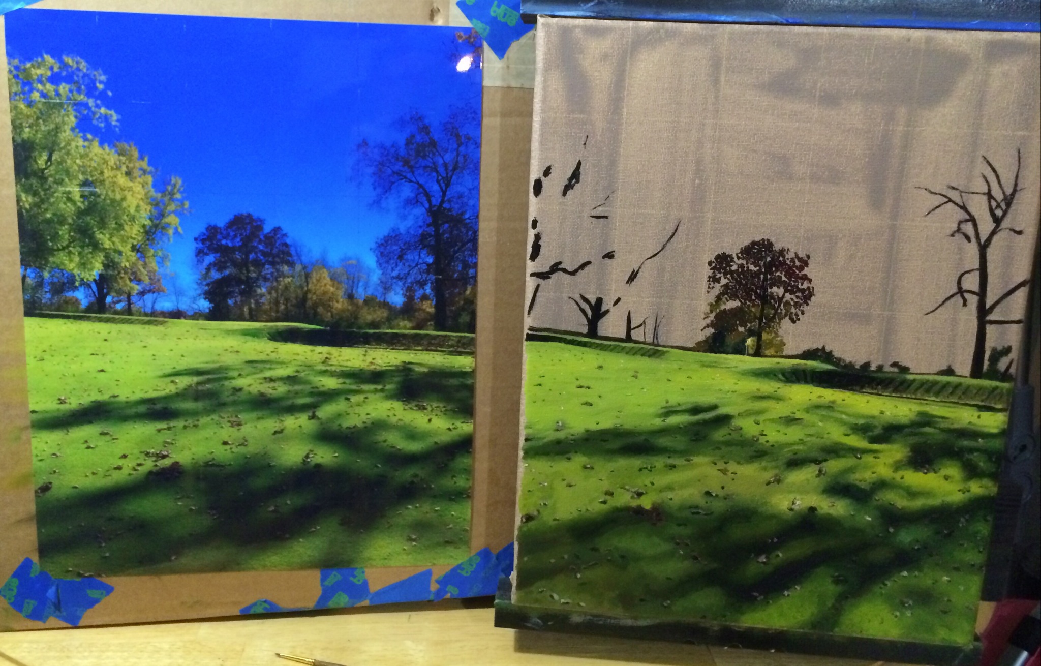 Urbana CC Hole 13 Part 2 November 23, 2014 • jrbgolfs Finished the fairway, railroad tie bunkers and green. Ready to start sky and finish the trees. Always more yellow and brown in the grasses then I think should be, but it turns out in the end. Share this: Click to share on Facebook (Opens in new window) Facebook Like Loading...