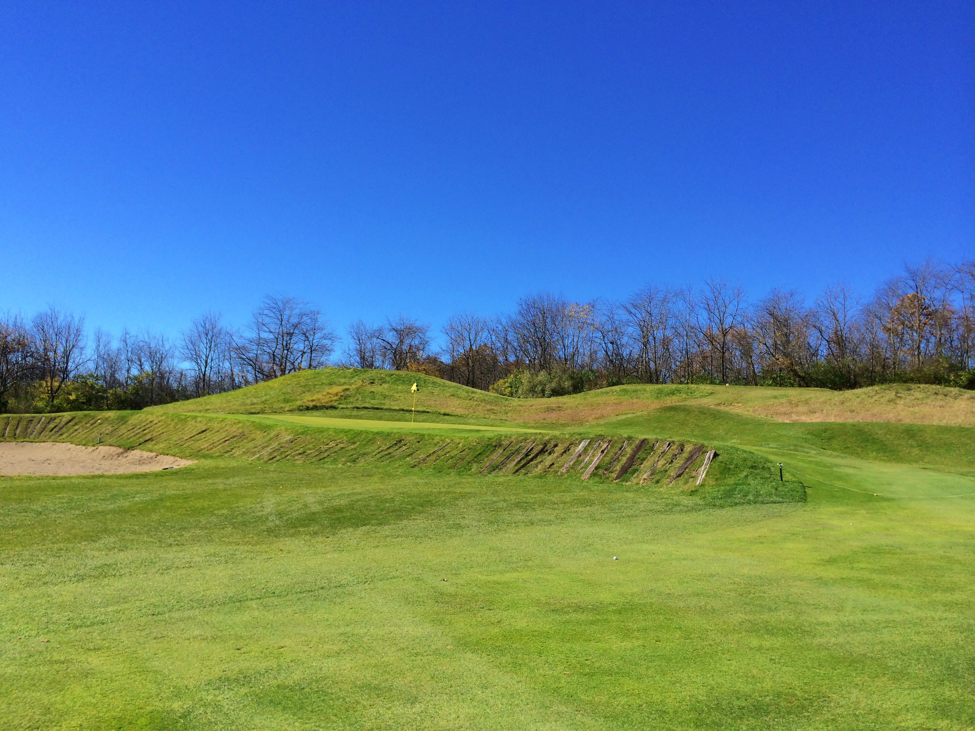 I am now working on the new 9 hole portion of the course at Urbana CC. This portion of the course was designed by PB Dye, Pete’s son, around 1992. This is one of the best par 4s anywhere and offers a risk/reward drive or lay up with plenty of opportunities for birdies or bogey. Really no trees in play on this hole, on a course overall where trees dominate. A well executed golf hole and always fun to play no matter what your handicap.