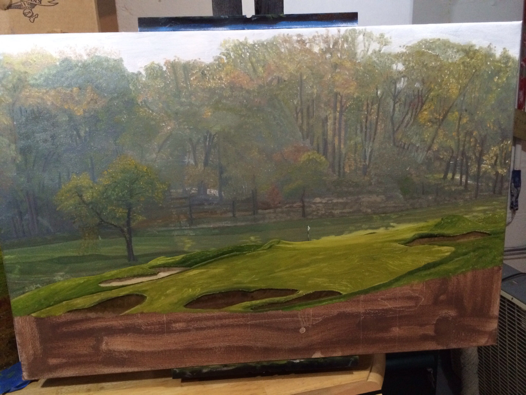 Somerset Hills CC Hole 2 Part 3 February 13, 2015February 13, 2015 • jrbgolfs The green and surrounds moved quickly. Lots of burnt umber in the bunker and grasses. The morning dew on the slope appears to have turned out by simply painting what was there. Just the foreground grasses left. Share this: Click to share on Facebook (Opens in new window) Facebook Like Loading...