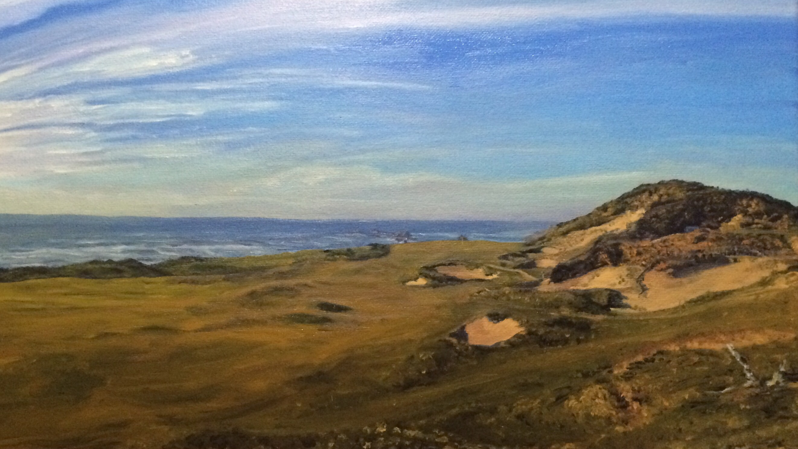 Pacific Dune Hole 13 Finished June 15, 2015 • jrbgolfs Completed this 10×20 inch oil on canvas. Love this course and architect, Tom Doak. He makes brilliant use of landforms and his routings are always a joy to play. Hope you enjoy this majestic spot by the sea. Share this: Click to share on Facebook (Opens in new window) Facebook Like Loading...