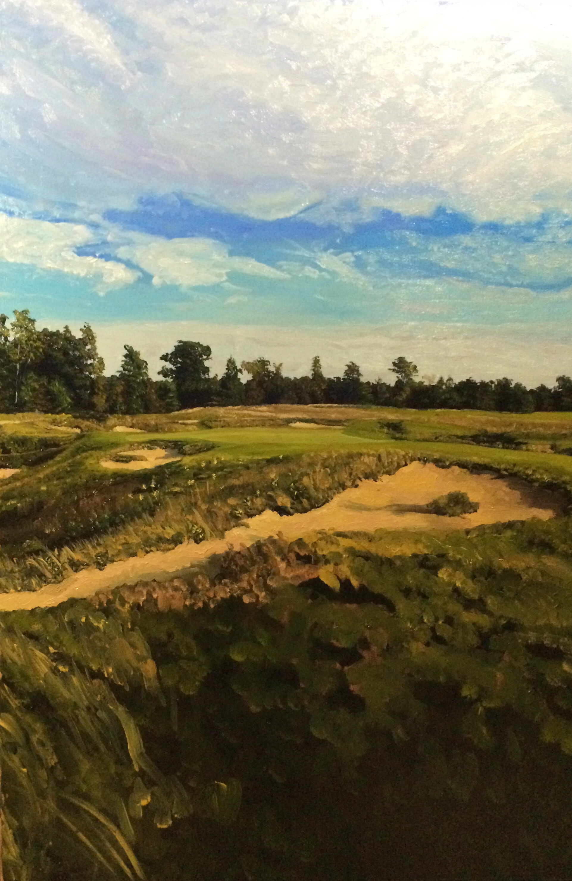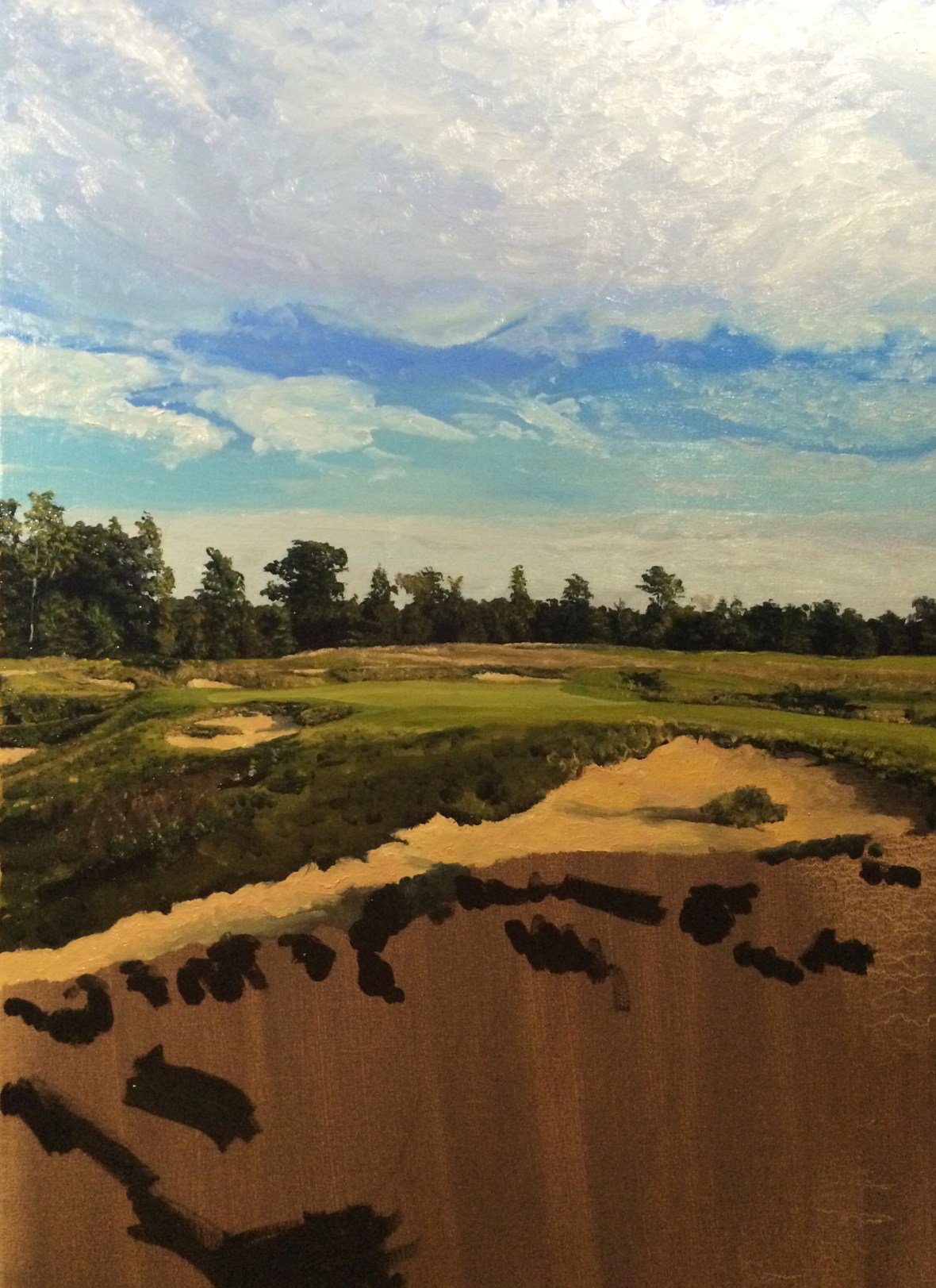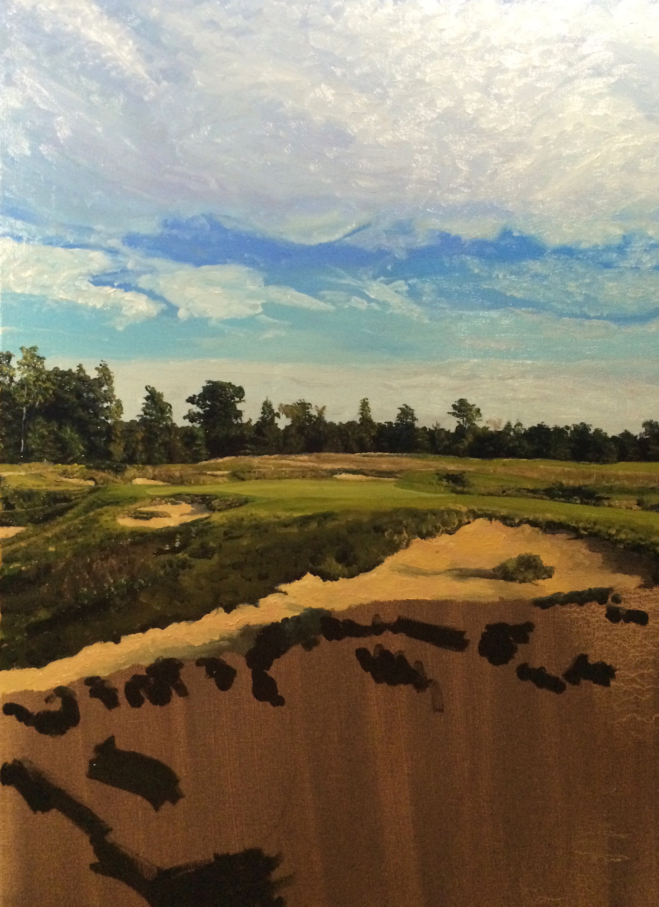 Kingsley Club, Hole 2, Part 4 October 22, 2015 • jrbgolfs Continued progress on grasses. Blocking in the dark base and will lighten up as I go. Just details after that. Share this: Click to share on Facebook (Opens in new window) Facebook Like Loading...