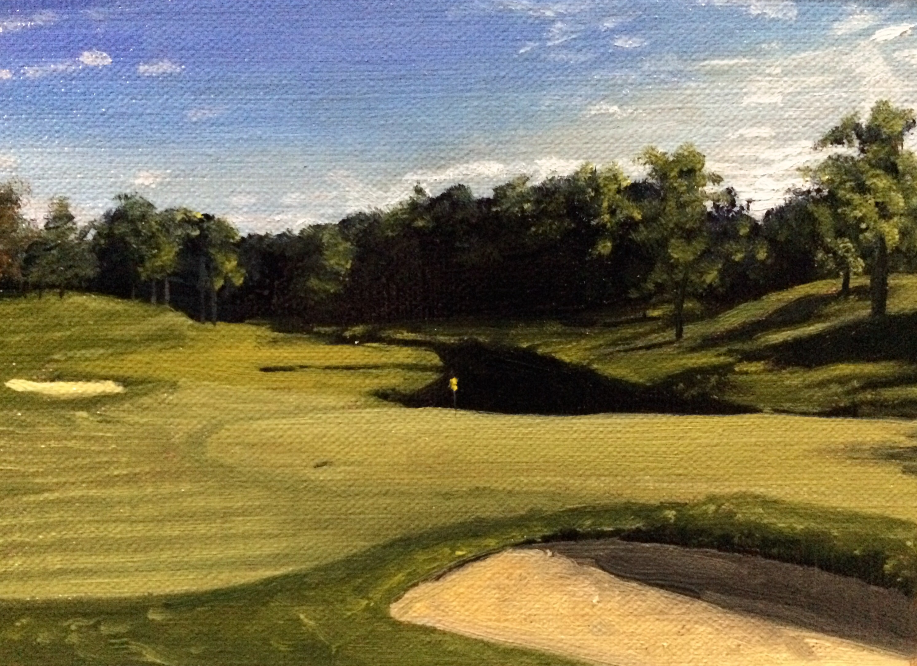 Muirfield Village GC, Hole 5, 5×7 inch oil on linen February 9, 2016 • jrbgolfs Decided to try a smaller canvas of a painting I intend to put on a larger canvas, and am very pleased with the result. Great design by Mr. Nicklaus, beautiful to look at and fun to play. Share this: Share on Facebook (Opens in new window) Facebook Like Loading...