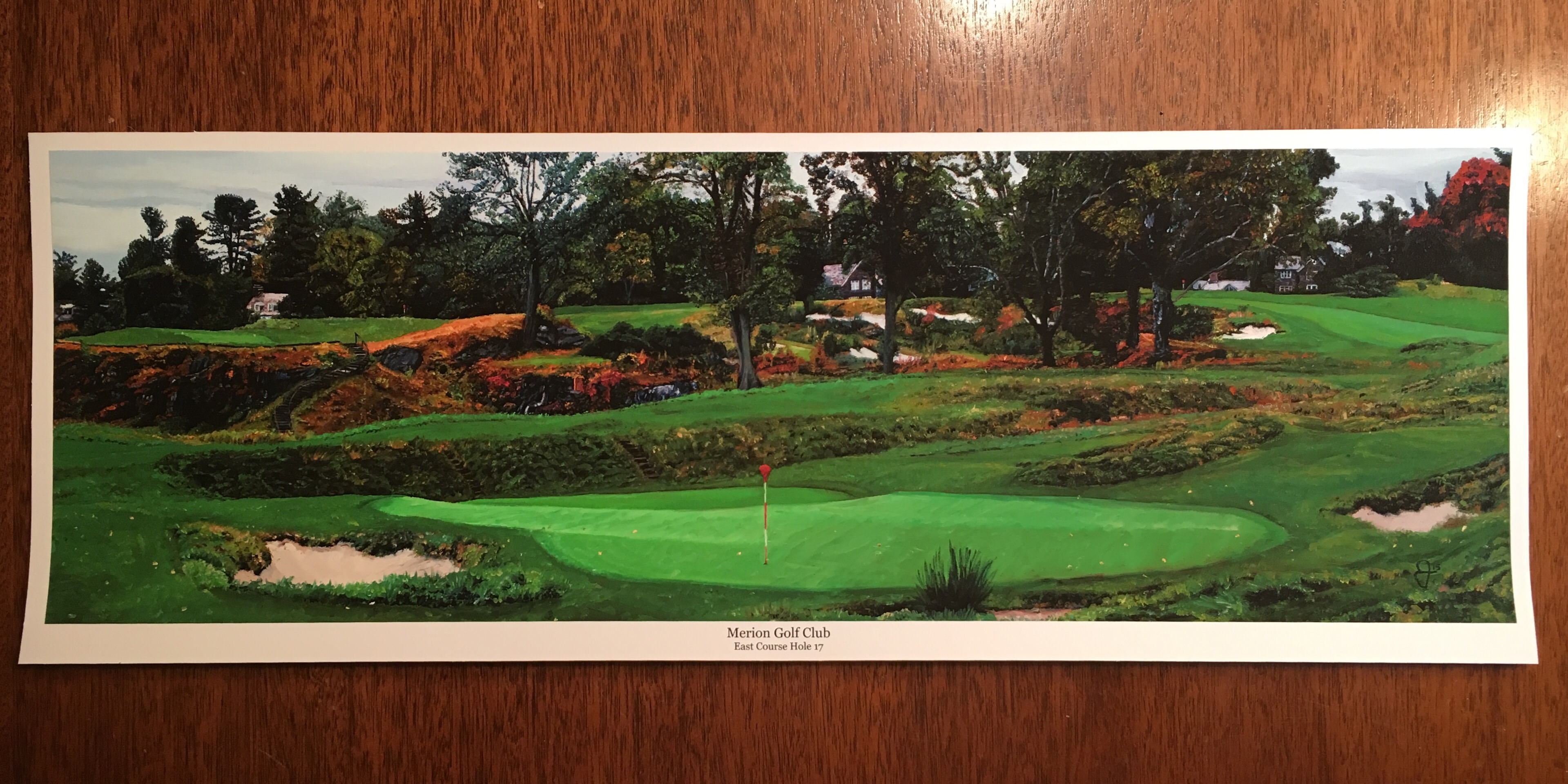 For sale for only $75, shipping included (within the continental U.S.), 8.5 x 24 inches, limited edition signed and numbered prints available of Merion Golf Club East Course Hole 17. Send an email to jrbgolfs@gmail.com to be provided payment options.