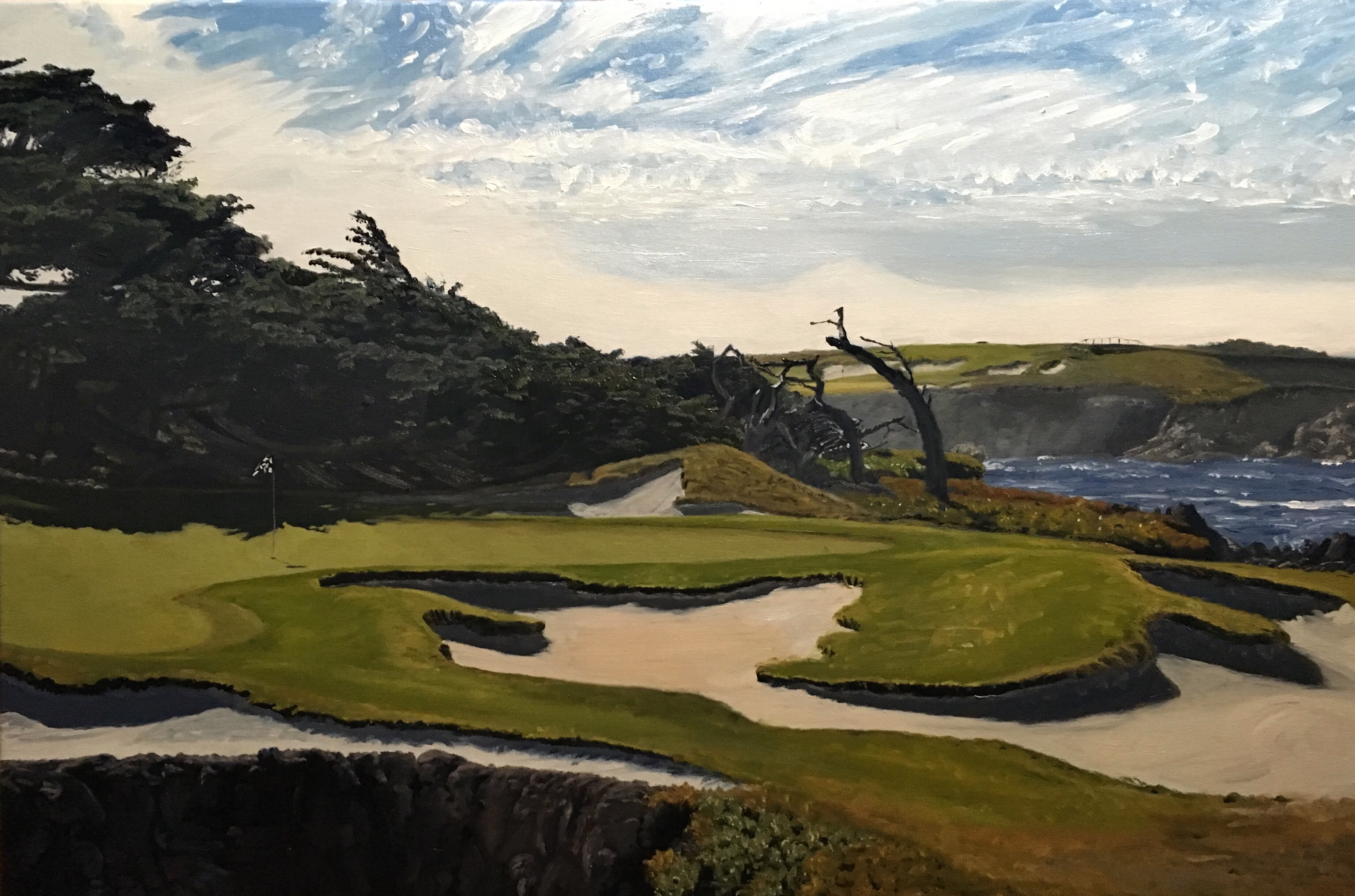 Cypress Point Club Finished June 4, 2016 • jrbgolfs Finished this 20×30 inch oil on canvas of the wonderful photo by Channing Benjamin if CPC Hole 15 with 16 in the background. This place truly looks magical! 36.578982 -121.964095 Share this: Click to share on Facebook (Opens in new window) Facebook Like Loading...