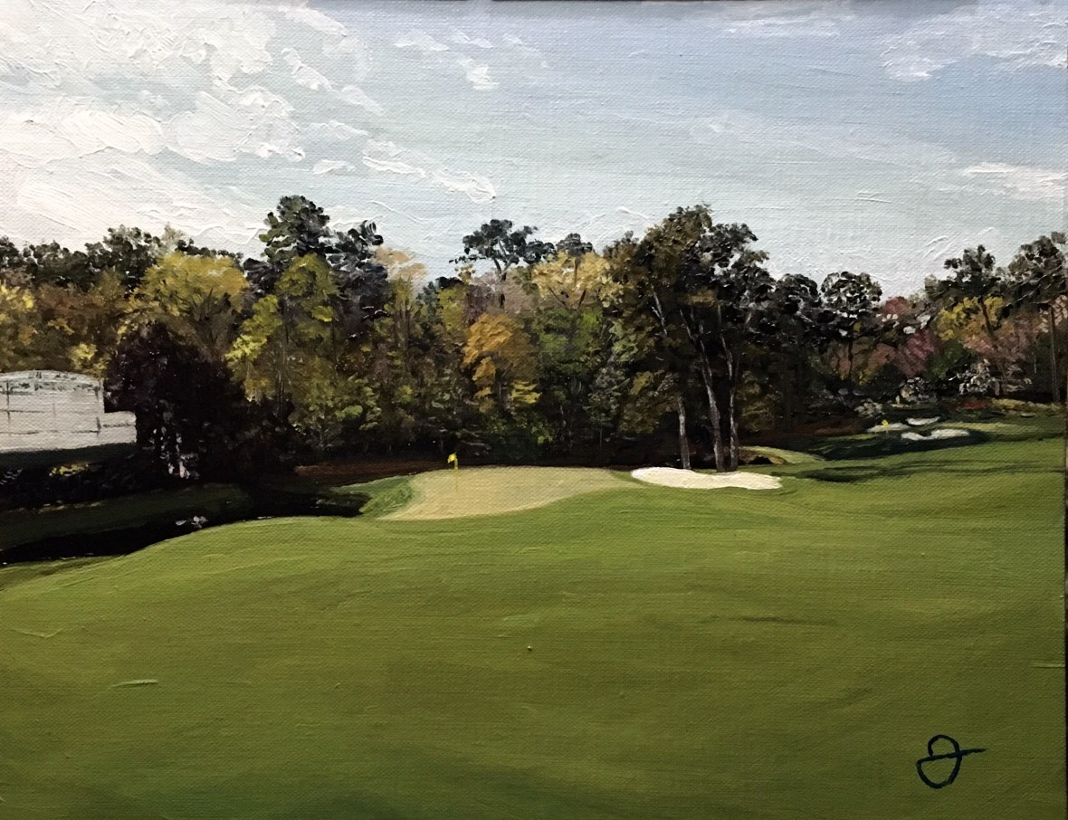 Augusta National Golf Club,White Dogwood. April 11, 2017 • jrbgolfs This 11×14 inch oil on linen panel is my photo from the Monday practice round in 2013. Loved this hole (other than the added trees on the right) and the fact you can see the 12th in the background made me want to paint it even more. 33.500715 -82.021866 Share this: Click to share on Facebook (Opens in new window) Facebook Like Loading...