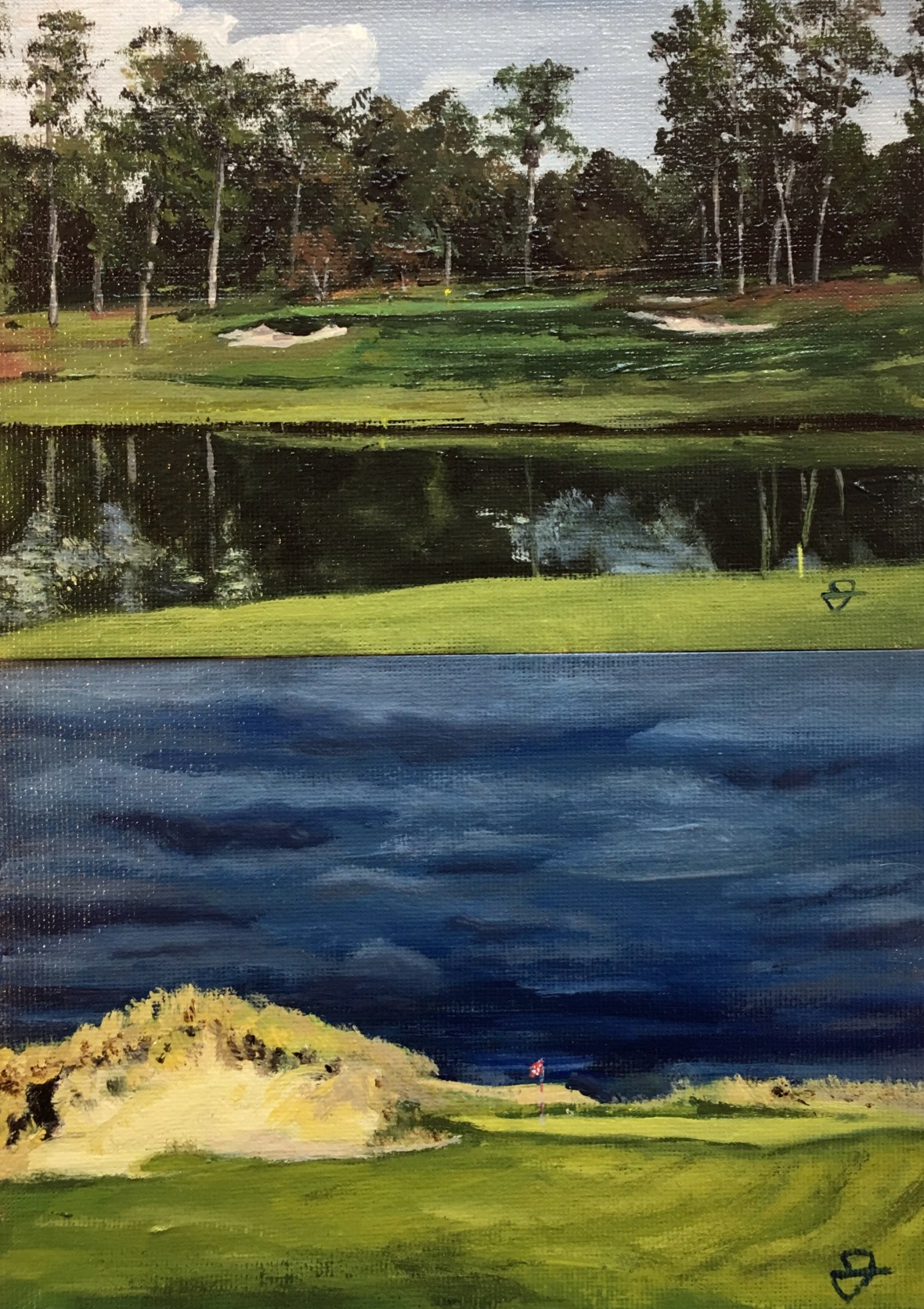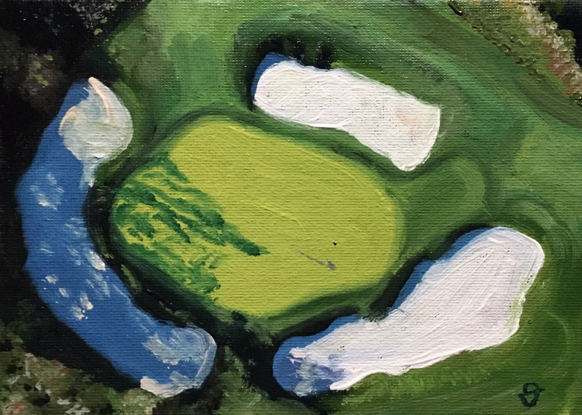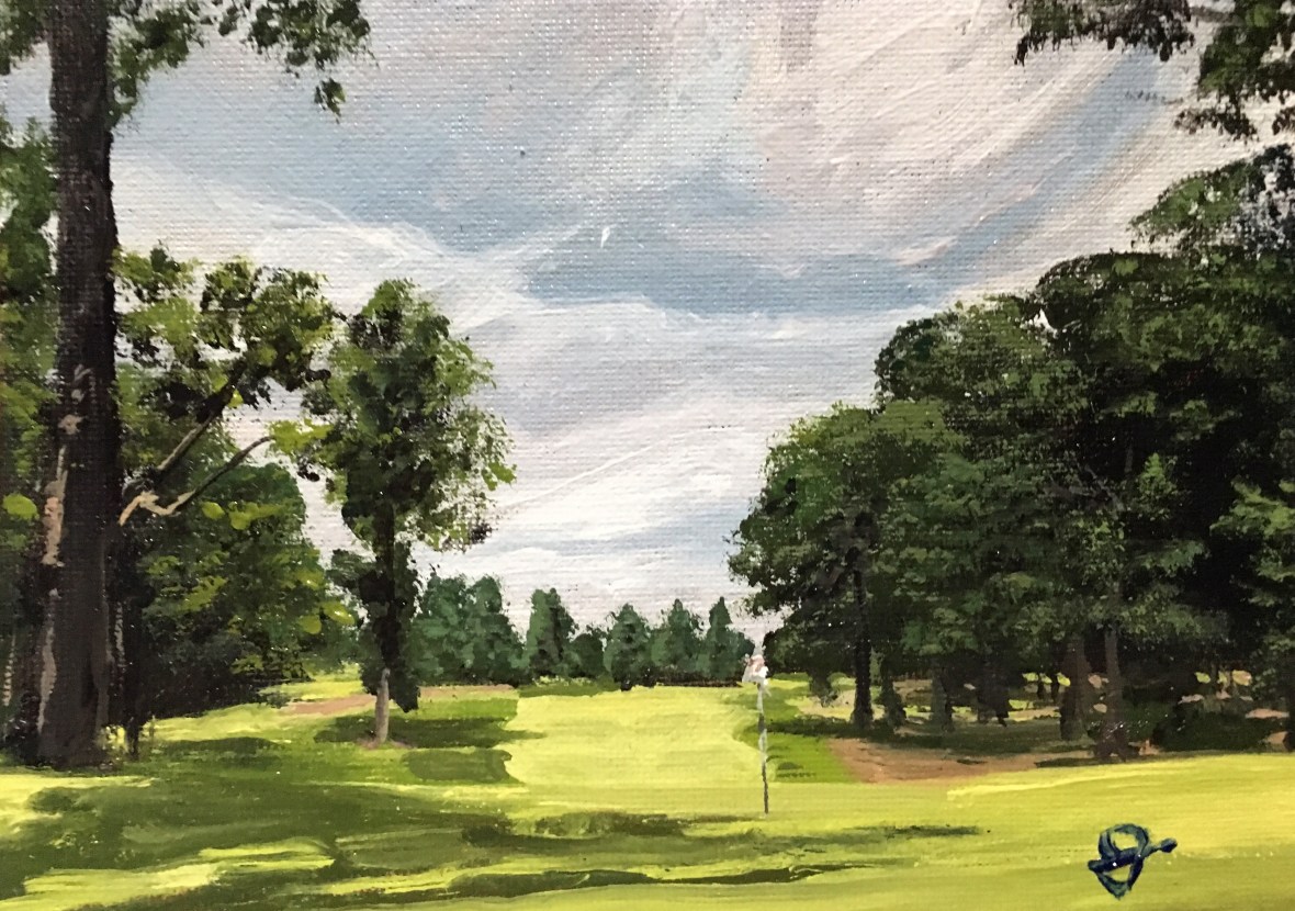 I challenged myself to do small paintings for any and all at only $50!! I’m about half way through the requests and have enjoyed seeing the diverse courses. Here are some of those paintings.