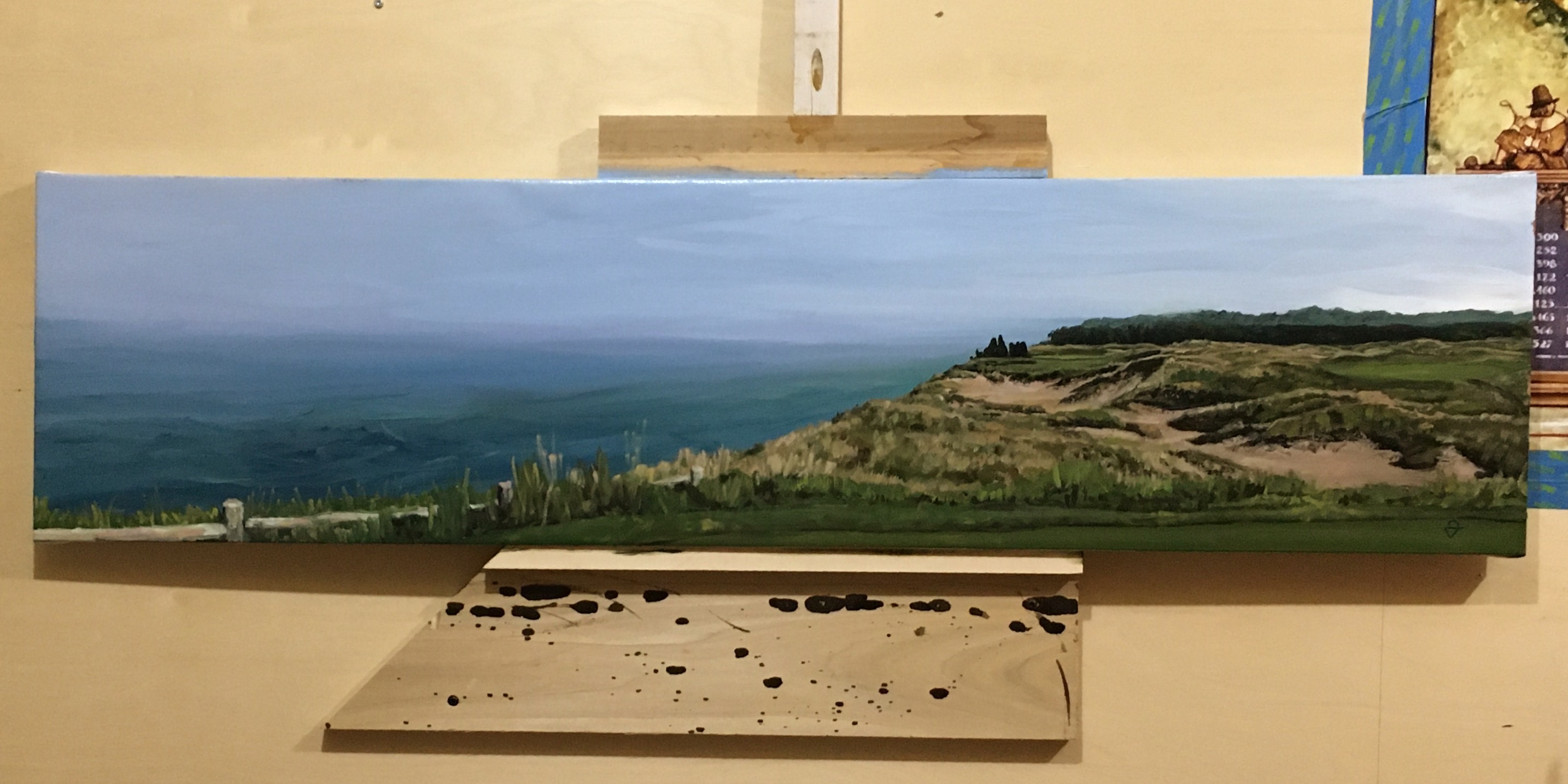 This 12×48 inch Geneva Oil on Centurion Linen showcases why people can’t stop talking about the views at Arcadia Bluffs. This was early morning with a foggy mist just clearing. Sunsets are spectacular there too.