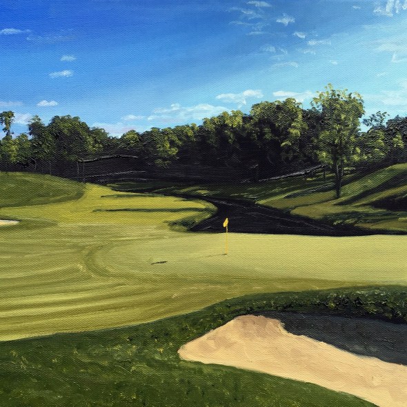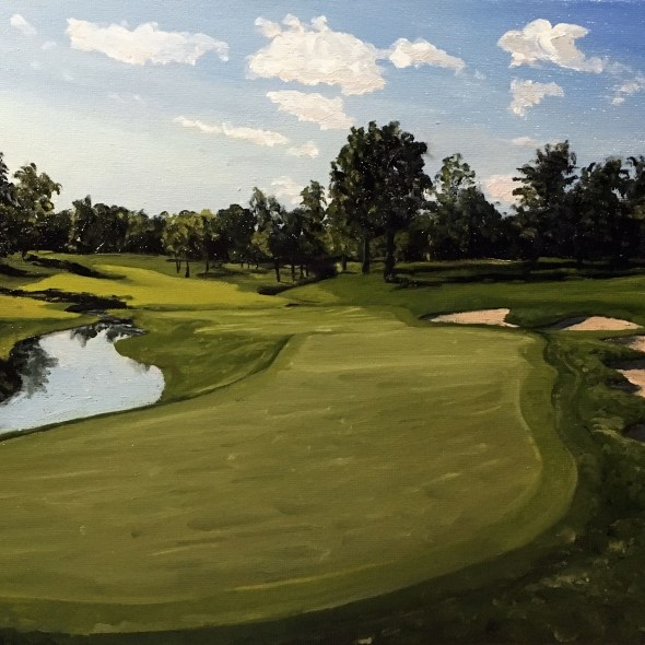 Muirfield Village GC, Hole 5, 5×7 inch oil on linen