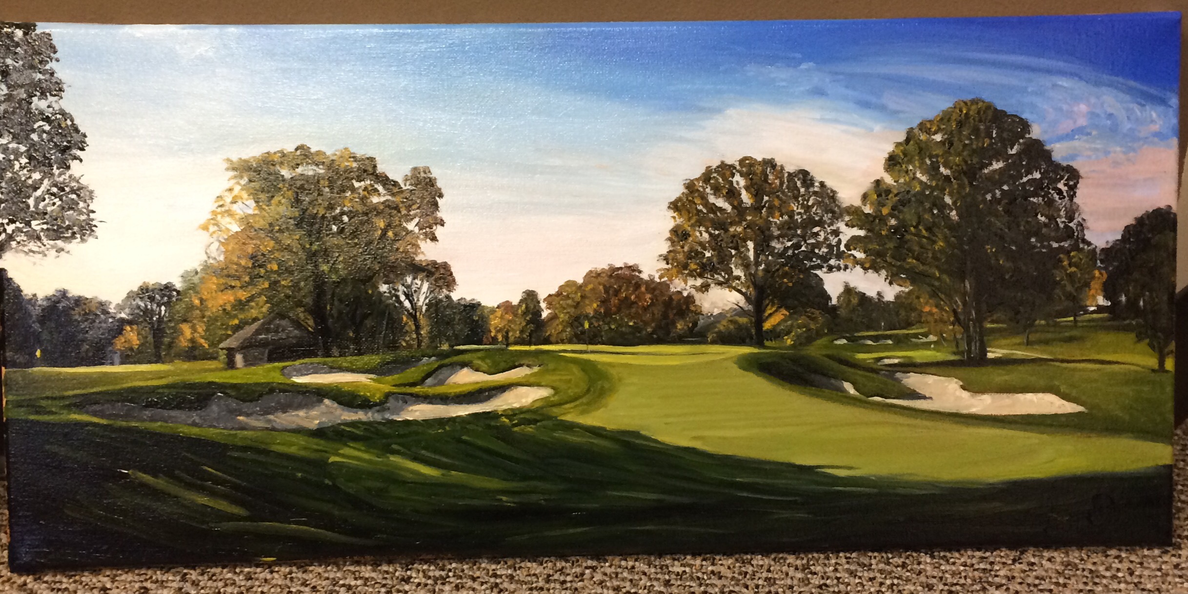 Merion East Golf Club, Hole 17, (12 x 36 Inches Oil on Canvas)